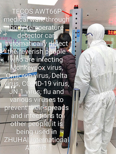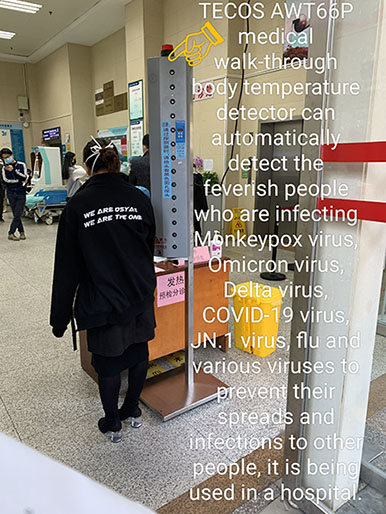 TECOS AWT66P door side type walk-through medical automatic scan Monkeypox virus, Chikungunya virus (CHIKV), Omicron virus, COVID-19 virus, flu and various virus human fever temperature detector (medical automatic scan human body thermometer)